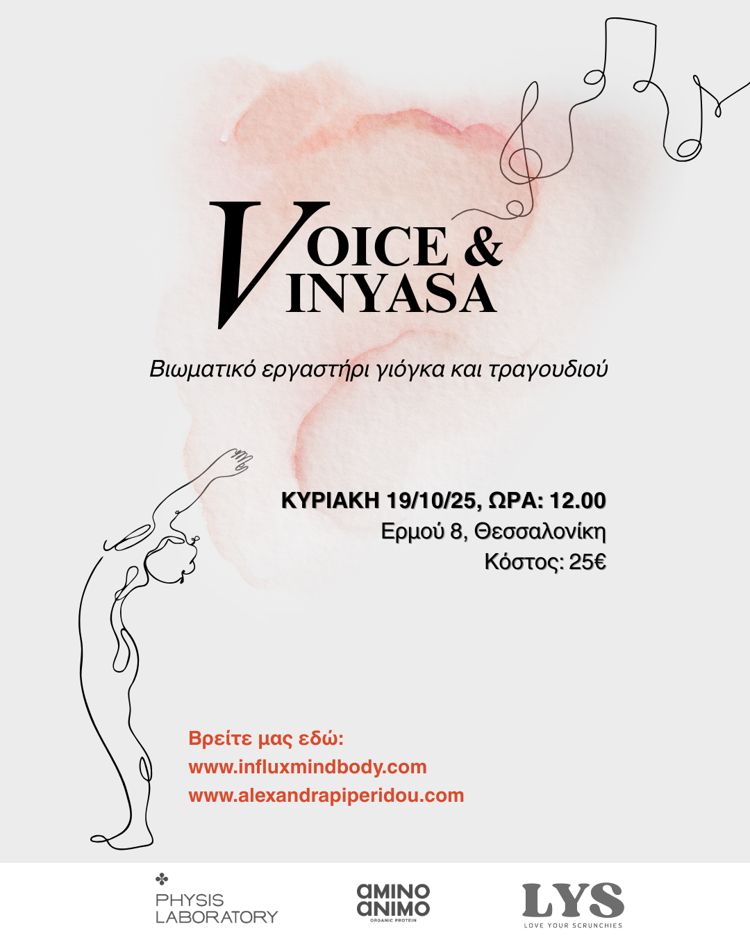 Γιόγκα και τραγούδι , λοιπόν, την Κυριακή 19/10/25 στο νέο χώρο του influx, Ερμού 8, στις 12.00.